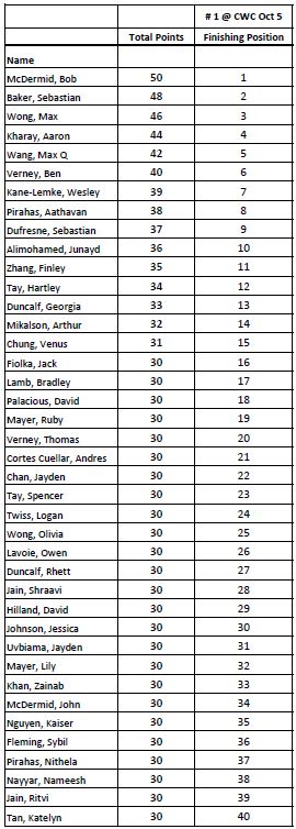 YYC Junior Bronze Series 25/26 - Event # 1 Results from Oct 5 at CWC